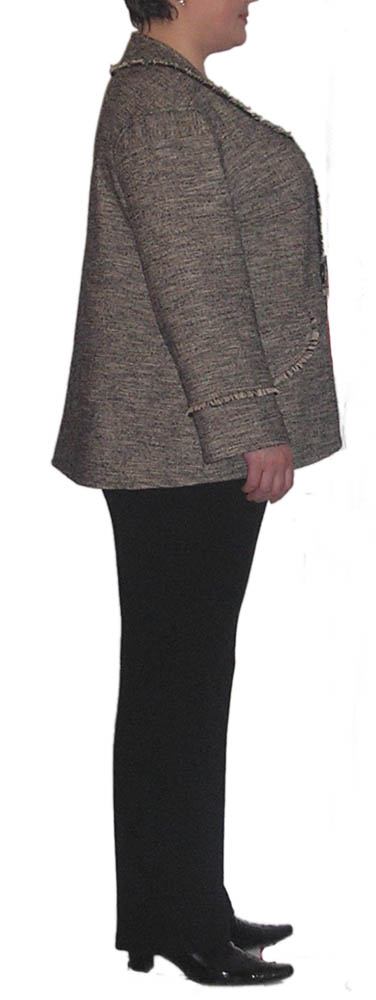 Natamoda Опубликовано 23 ноября, 2009 Поделиться #792 Опубликовано 23 ноября, 2009 Костюм на 58 размерПредполагается носить с гольфом, шарфиками, косынкамиРукав функциональный, поэтому есть заломы. Хотя сейчас вижу, что можно было бы и отвесный, чтобы было поаккуратней.Нагрудные вытачки оформлены складочками, на окате рукава тоже складочки.В движении Х-образность ног не так бросается в глаза, как в статике. Широкие брюки делать не хотелось.За основу взята эта модельТоже хотели сделать рукав покороче, но у клиентки нет гольфов с длинными рукавами (она высокая), ткань тёплая, обнажённые руки смотрятся странно. Мой блог 3Д лекала дистанционно Ссылка на сообщение Поделиться на другие сайты Поделиться