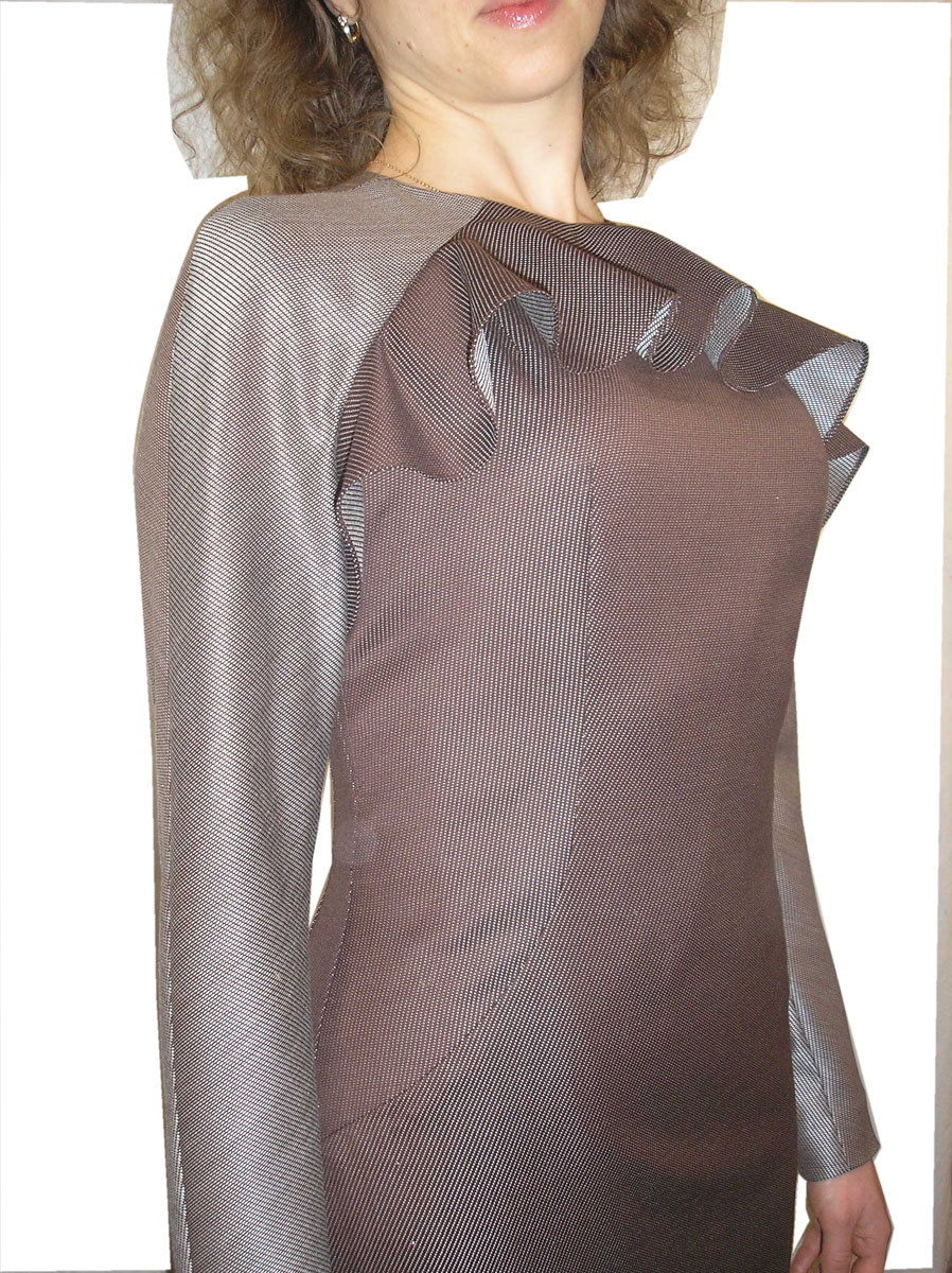 Natamoda Опубликовано 7 марта, 2011 Поделиться #1323 Опубликовано 7 марта, 2011 какой состав, сутюжке поддается?Не только на фото, но щупая, не смогла определить состав. Похоже на хлопок со льном на ощупь, но не мнётся. Вискоза только для блеска, но пластичности вискозы нет. Ткань из дорогих.Концы вытачек сутюжились, а больше сутюжка не потребовалась.ИМХО все это прекрасно срабатывает на проверенном прилегающем силуэте, но... в моделях более сложных форм чутье Мастера заменить и повторить "один в один" не так просто... На манекене это сделать легче, чем на плоскости. Вертим манекен, рассматриваем линии со всех сторон. Понравилось - режем на кусочки и разворачиваем на плоскость, не понравилось - дальше правим, пока не понравится. Если на манекене понравилось - значит и на фигуре будет так же. повторить подобную форму и посадку рукава удастся на любой фигуре (если есть манекен 3Д) или можно предположить противопоказаниярукав с небольшой свободой, близкий к втачному рукаву даже предпочтительней использовать на полную фигуру, у которой, как правило, небольшое плечо и большая грудь. Часто конец плеча для втачного рукава и определить невозможно. А цельнокроеный рукав и реглан - самое то, что надо. Конечно, на фигуру с большой грудью волан на груди не стоит делать. Мой блог 3Д лекала дистанционно Ссылка на сообщение Поделиться на другие сайты Поделиться