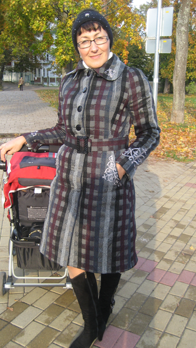 Kundze Опубликовано 20 октября, 2009 Автор Поделиться #74 Опубликовано 20 октября, 2009 Сшила пальто из плащёвки типа тафта с вплетёнными вискозными нитями.Куда глядели мои глаза,когда я покупала ткань.Более мрачного варианта трудно придумать.А ведь была в прдаже и яркая с загогулинками.Постоянно я её доставала,рассматривала.Уже грешным делом думала чехлы в машину пошить.Но как только вспоминала о стоимости,клала обратно "у шкапчик"-))Прошло три года....Модель из Бурды 119 10/2007Выглядит неказисто,хотелось подлиннее,но ткани нехватило.Видимо при покупке ткани мне представлялась куртка.Продублировала клеевым синтепоном.Обезобразила вышивкой-))Пальтецо получилось лёгкое,тёплое и удобное.Пользую уже несколько дней.Сегодня нас солнышко порадовало,гуляли в Юрмале. Время от времени все же стоит немного отдохнуть от безделья. / Ж. Кокто Ссылка на сообщение Поделиться на другие сайты Поделиться