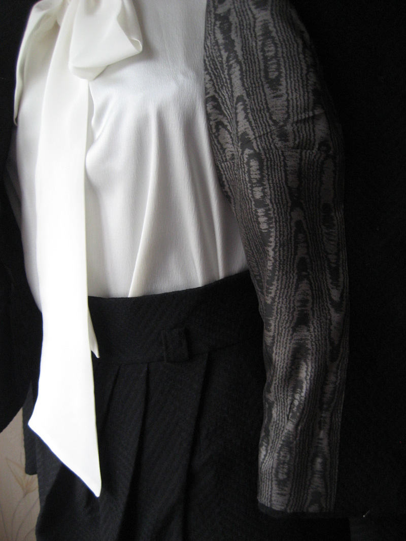 Наиболее всего из костюма блузка понравилась, такая женственная, бант прелесть. Костюм строгий, но нестрогий))), увидеть бы его в живую. Знаю манекены еще те Супермодели ;-))