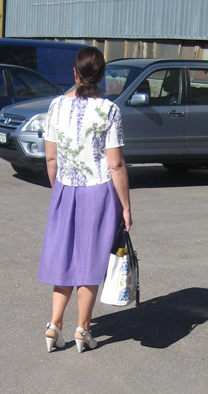 Kundze Опубликовано 26 июня, 2015 Автор Поделиться #2185 Опубликовано 26 июня, 2015 В ожидании лета...Может быть оно наступит в этом году?Теряюсь в догадках-))Насмотрелась на девочек,сшивших себе верхА с разноуровневым нижним срезом-))Хлопок с фактурой достался мне небольшим лоскутом с большой скидкой.С рулона резать-неподъёмная цена-))Топ.Выкройка из Патронеса. Лиф порезан по кривой линии,в которую частично уведены нагрудные вытачки . С позапрошлого года лежал у меня кусочек непонятного состава ткани.Натуральная,но из какого-то экзотического волокна.Цвет красивый,на ощупь приятная,но в эксплуатации поганенькая оказалась.После первой стирки превратилась в тряпку.Вот эти брюки из этой ткани с удовольствием поносила только в отпуске,после стирки стали некрасиво мяться. Но не пропадать же "добру",сшила юбку. Но непростую.Делать на поясе-просто зря потратить время(брючный опыт).На резинке-несолидно как-то.Пришила к базовой майке чуть выше уровня талии.Жутко удобно. Получился такой силуэт баба на чайник типа буль.Мне нра. Время от времени все же стоит немного отдохнуть от безделья. / Ж. Кокто Ссылка на сообщение Поделиться на другие сайты Поделиться