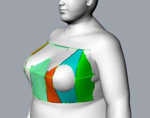 Для визуализации разрезала поверхность между шириной груди до линии талии рельефами (схематично), части развёрток разместила вдоль горизонтальной линии на уровне выступа груди