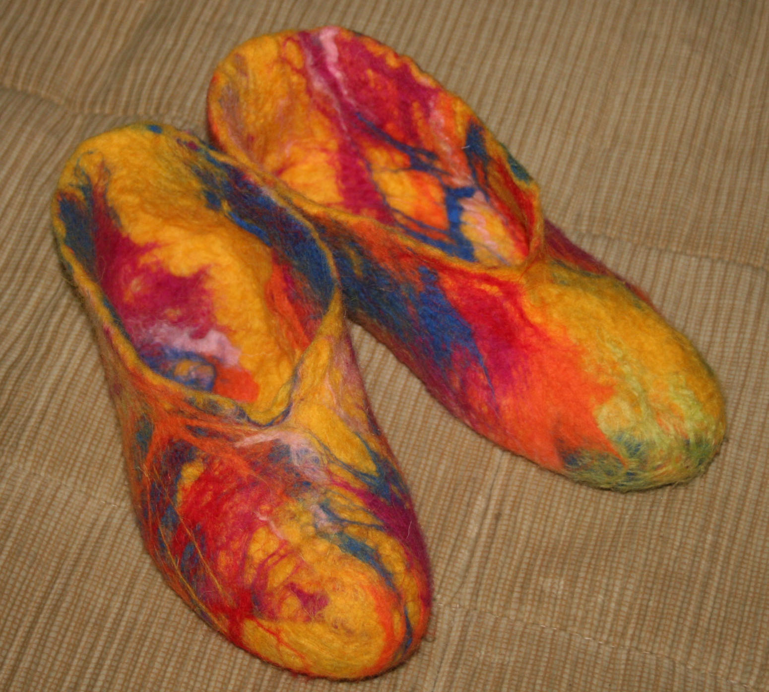 Т.В. Опубликовано 6 октября, 2008 Автор Поделиться #50 Опубликовано 6 октября, 2008 Сваляла тапки. Опыта еще мало, дефектов у тапок многоКакие красочные... осенне-багряные! Ссылка на сообщение Поделиться на другие сайты Поделиться