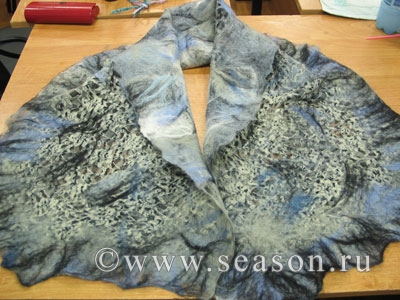 Занятия у нас начались 1,5 месяца назад, но, мне кажется, она на валяние "подсела" всерьёз и надолго:). Вот несколько её работ:post-2044-1238261493_thumb.jpg post-2044-1238261548_thumb.jpg Это маленький шарф на шифоне.post-2044-1238261653_thumb.jpg А это большой шарф на гипюре, двухсторонний.post-2044-1238261724_thumb.jpg