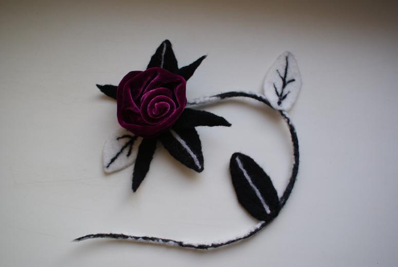 Так как цвета были черные и лиловые-фуксии, хотелось свалять что-нибудь этакое.. зловещее.. А получился в итоге опять гламур-тужур .:)))