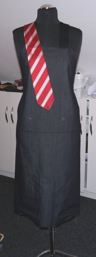 Получается фартук-сарафан "с галстуком через плечо", с подобающей блузкой, можно и в бюро-с;)))