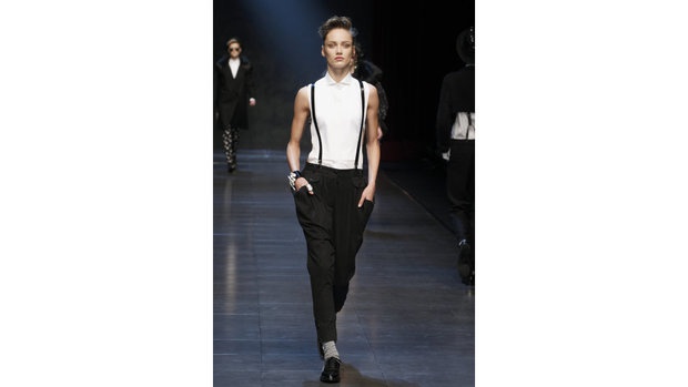 Брючки в полосочку просто маст хэв - красота! Драма нуар в чистом виде)). Стилизация с галстуками/подтяжками будет здесь очень в тему!