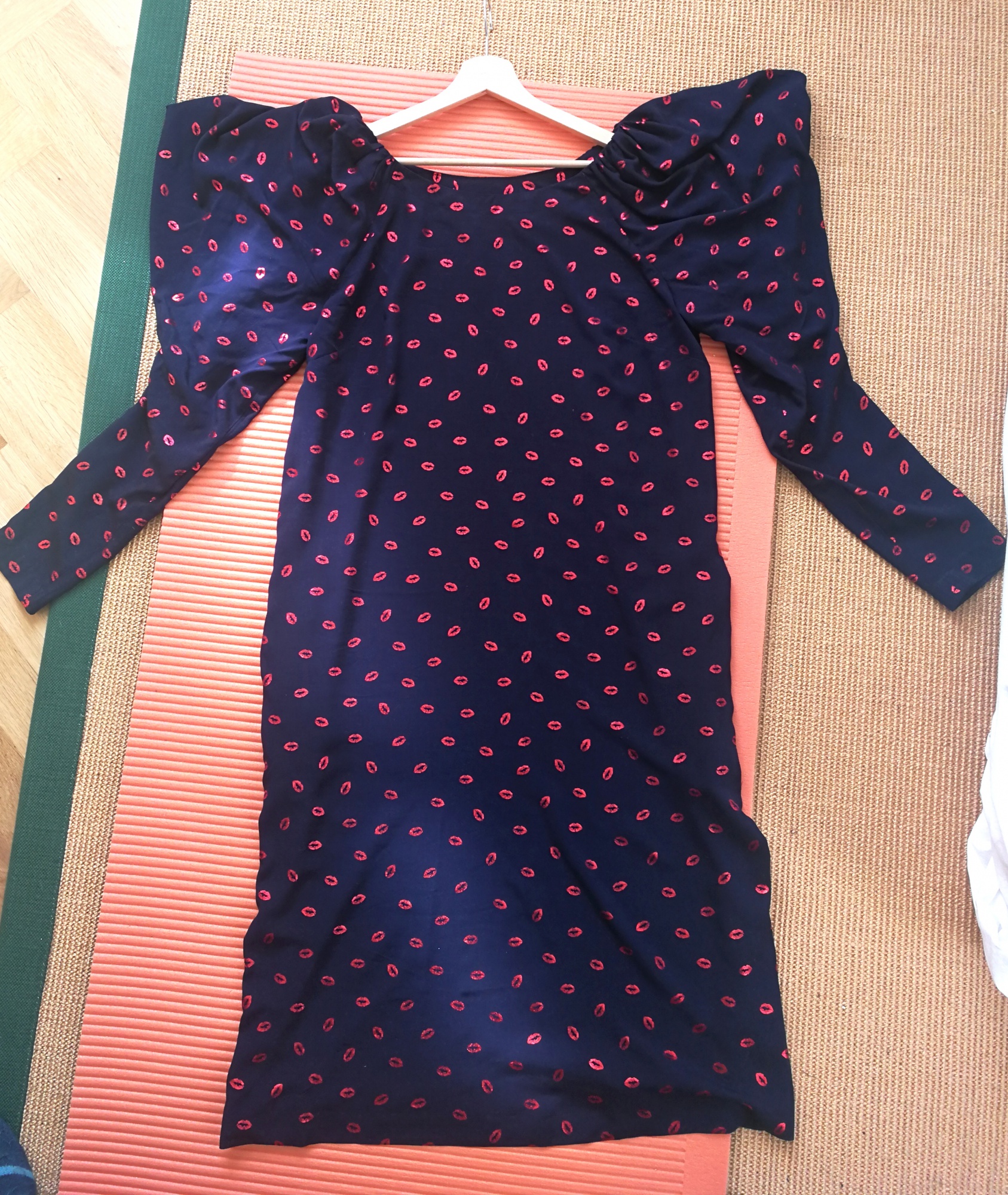 Темно-синее платье с "алыми губками" и шикарными рукавами.