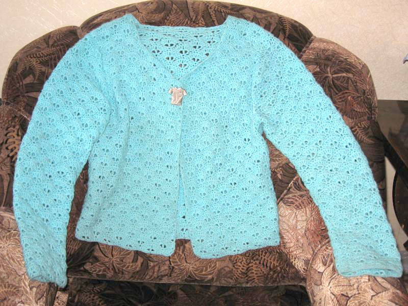 Связано крючком, без пуговиц, вместо застежки- брошки и т.д."
