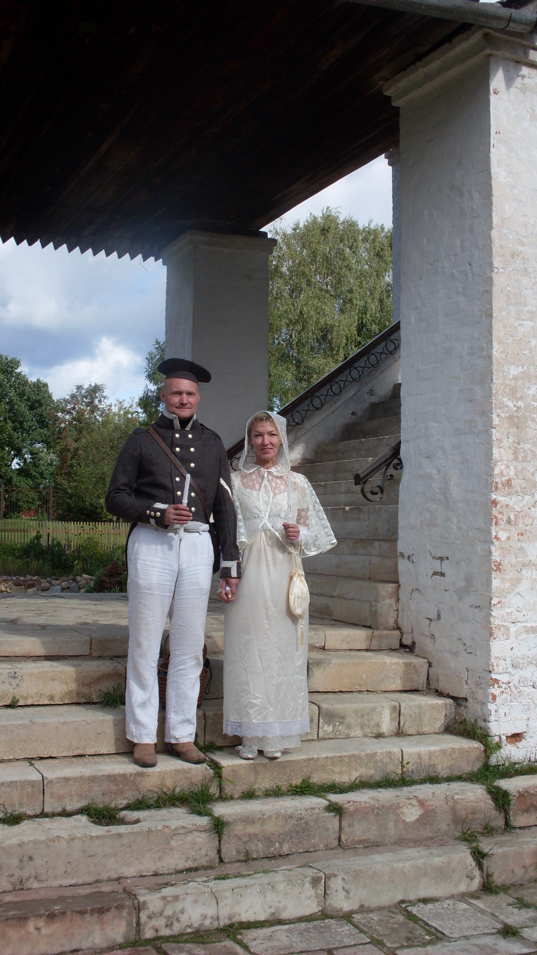 Львёнка Опубликовано 27 сентября, 2010 Поделиться #124 Опубликовано 27 сентября, 2010 (изменено) Фрося, спасибо за ответ и поздравления. Точки и линия вшивания мне понятны, неясно только местонахождение точек. Придется кроить черновой вариант из какой-нибудь муляжной ткани, а то жаль будет испортить сукно. Но у меня всё должно получиться! :)По поводу Бородинских подробностей - что именно интересует? У меня с этой поездкой связано больше личных, чем "костюмных" впечатлений. Если интересно - тоже расскажу :)) Что касается "костюмных" - поражает упорство реконструкторов-мужчин, разыскивающих исторические описания формы, шьющих на руках мундиры и кивера, да так, чтобы в строю все были одинаковыми. Женщин в лагере было немного, дамы с Бородинским "стажем" были одеты интересно и в соответствии с эпохой, у "новичков" было много стилизации, но всё равно восхищала проделанная работа.Дело было в выходные, приехало около 50 000 зрителей, и было приятно слышать от встречных возгласы : "Какая красота!" и подобные. Не покидала мысль, что когда-нибудь эта красота возьмет верх над современными бесформенными, бесцветными, бездушными одёжками, лишенными и лишающими их обладательниц красоты и индивидуальности...Вот еще кое-что оттуда: Ваша Львёнка. Изменено 3 февраля, 2011 пользователем bahira Ваша Львёнка.Никогда не ставь себе ограничений, и всё получится! Ссылка на сообщение Поделиться на другие сайты Поделиться