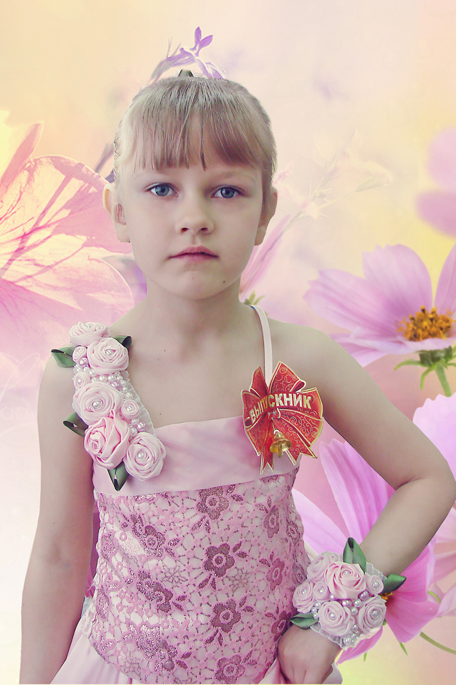 Она писала, что лепестки с проволочкой, обмотанной атласной лентой и наклеенной на лист. Все конструкция, в том числе и цветок, из этих листьев двух разных размеров сложена. Лепестки вырезаны из основной ткани платья. Основа корсетная, но без шнуровки, на молнии.