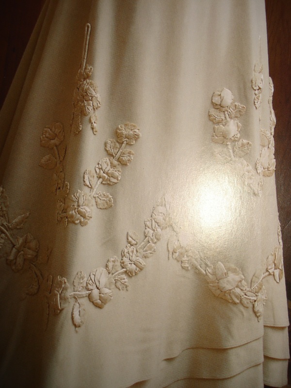 Интересный цветочный декор на платье из атласа от Армани от Муха:"Декор выполнен из этой-же ткани. Между цветочками можно разглядеть небольшое количество стразов сваровски)