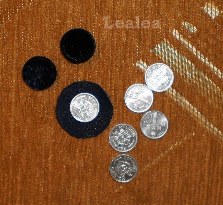 косичка сделана из трикотажа с золотым напылением , с обтянутыми тканью монетками. Да-да не пуговицами , а монетками. Выбрала монеты по нескольким причинам: они легкие , плоские , нужного размера , не ржавеют и может еще по Фен-шую приманят богатство……:-)