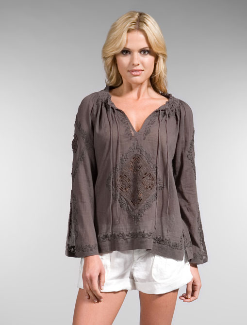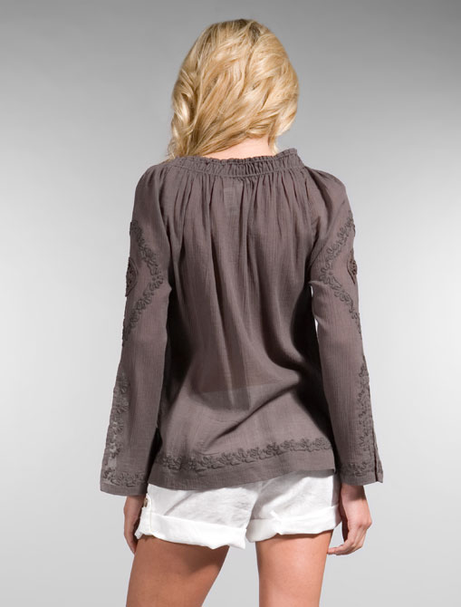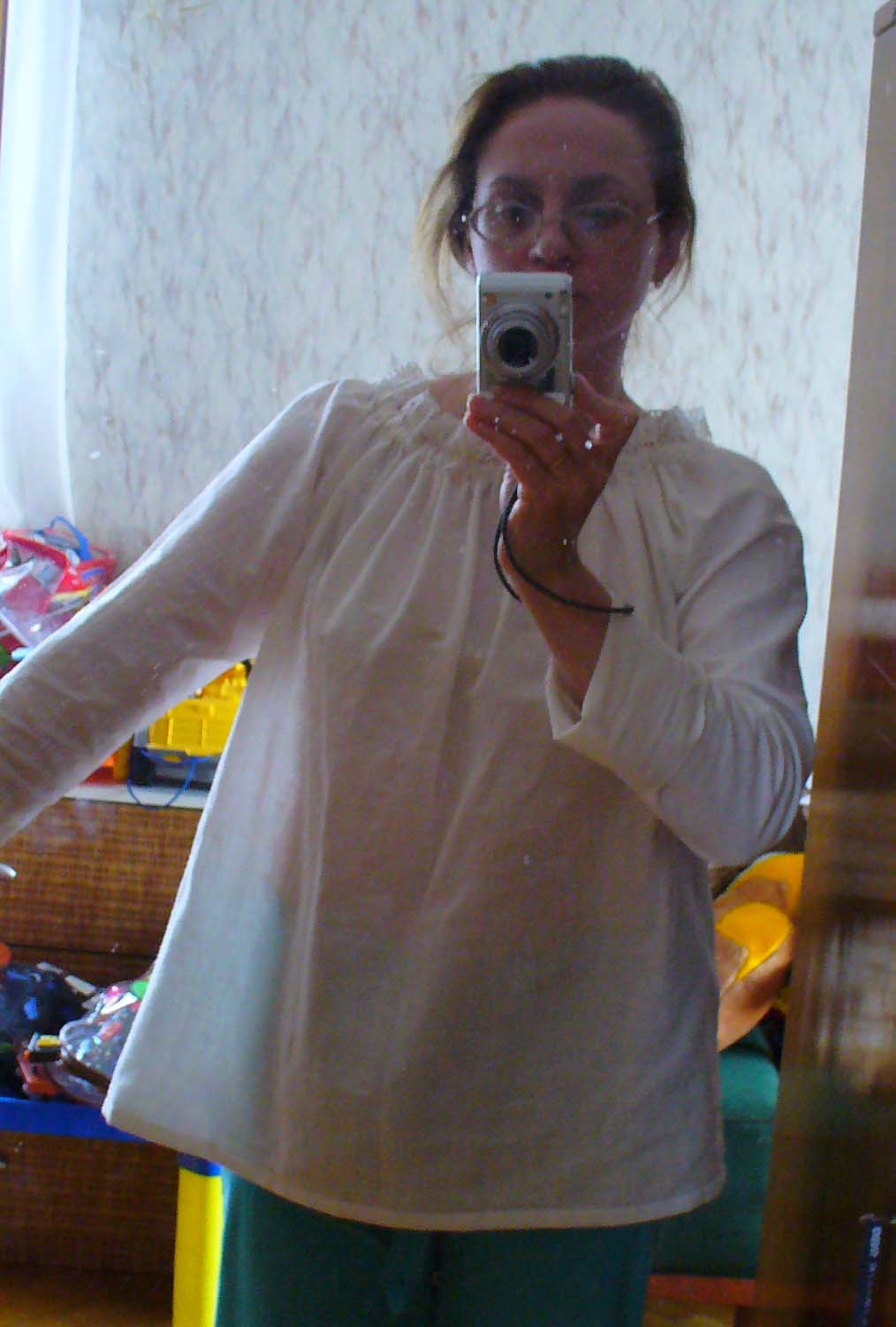 Lemur Опубликовано 21 апреля, 2009 Поделиться #140 Опубликовано 21 апреля, 2009 Попалась блузочка в тему. Ничего, в принципе, особенного, но на обработку горловины стоит обратить внимание. В кулиску продёрнуто две верёвочки, одна под другой, для регулировки сборки. Ссылка на сообщение Поделиться на другие сайты Поделиться
