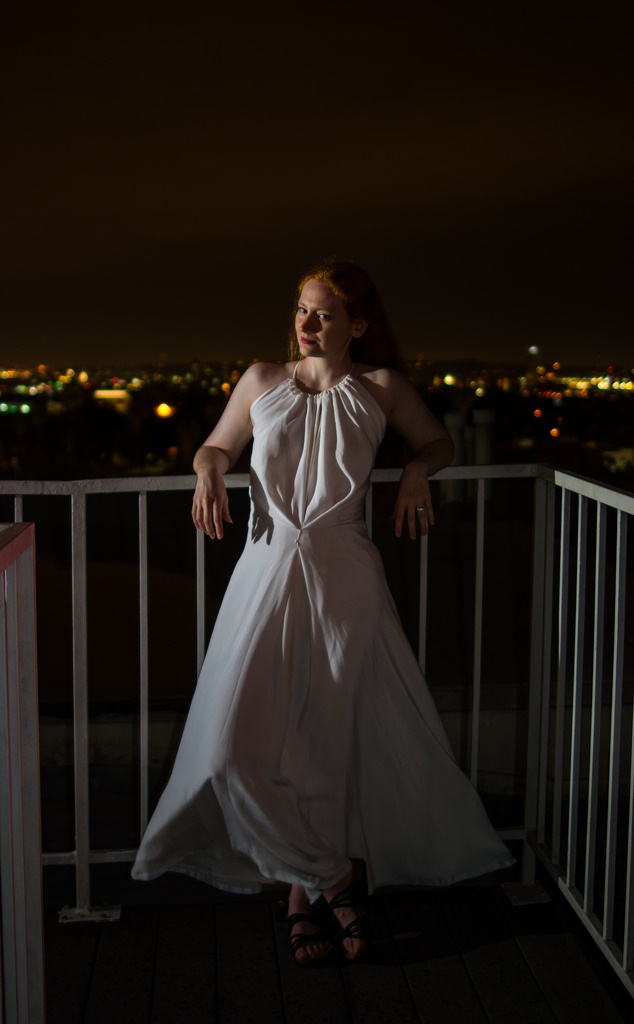 На этой фотографии на балконе видно юбку в движении, как красиво развевается! Девушке идёт такой богемный образ.