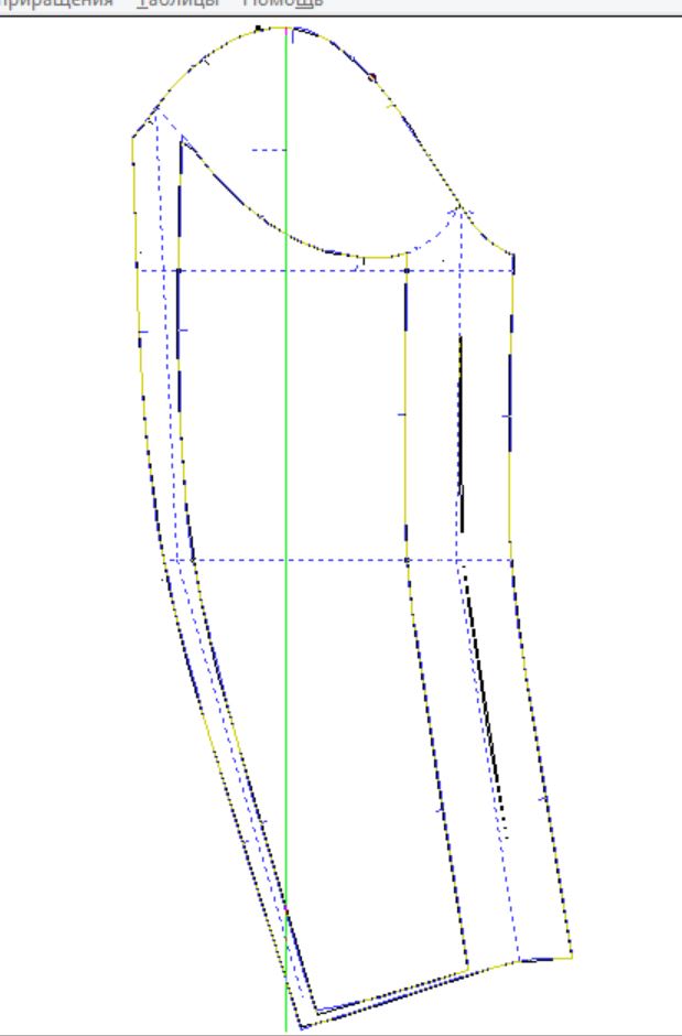 3. Перемещением этой точки в разных направлениях ( при навнедениии курсора так же появляется крест) добиваемя окончательного совпадения линии плеча интерактивной конструкции и ваших оригинальных лекал.