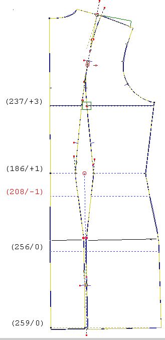 meharus Опубликовано 2 июня, 2018 Поделиться #399 Опубликовано 2 июня, 2018 Активирую позицию "Талиевые вытачки"4. Этот рычаг обеспечит вам либо заход деталей спинки и бочка спинки друг за друга ниже линии талии , либо расхождениеВыше этого рычага (у вас он №4) имеется точка, при наведении на которую показывает крест. она, как и верхний крест обеспечивает угол выточки, её отклонение по отношению к вертикали. здесь проблема такая:эта точка сдерживает вокруг себя линии на определенном расстоянии. и когда имеем незначительный перехлест она не позволяет сблизиться линиям. из-за этого получаю ломанные, а не плавные линии. в дальнейшем это можно исправить, но хочется сразу иметь нормальную натяжку. Ссылка на сообщение Поделиться на другие сайты Поделиться