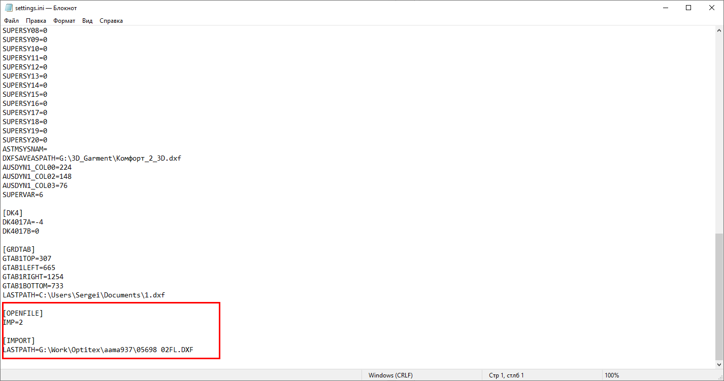 sesubot Опубликовано 18 сентября, 2020 Поделиться #644 Опубликовано 18 сентября, 2020 (изменено) Ребята, кто активно пользуется импортом? Мне прислали лекала в .dxf из гербера. Я попыталась их открыть, ничего не вышло, программа ничего не распознала. И теперь, когда я нажимаю на импорт, программа не реагирует. Как думаете из-за чего это? Может они присылают мне .dxf не из лицензионной версии? У меня такое уже было с этим клиентом и мне пришлось переустанавливать программу, чтобы эти кнопки заработали, только в этот раз у меня нет с собой установачных дисковDXF не зависит от лицензии.В папке графис есть файл settings.ini .Откройте его с помощью блокнота ,найдитетам секции [OPENFILE] и [iMPORT] ,удалите секции и их содержание ,сохранитефайл (только с расширением .ini ,а не .txt) Может поможет. Изменено 18 сентября, 2020 пользователем sesubot Ссылка на сообщение Поделиться на другие сайты Поделиться