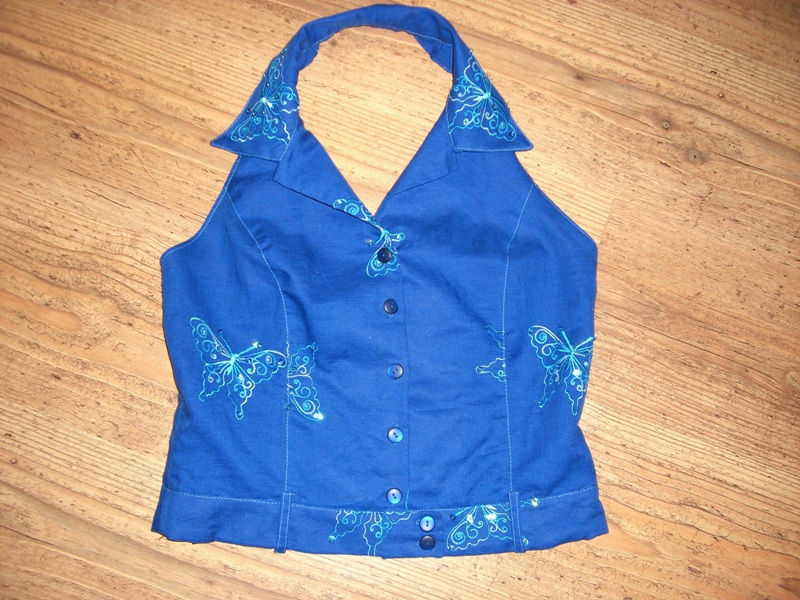 Суок Опубликовано 25 августа, 2008 Поделиться #13 Опубликовано 25 августа, 2008 Года два назад был куплен лен ярко-синего цвета в бабочки. Душа просила чего-то яркого - летнего сарафана или туники. Раскроила сарафан, примерила, не понравился, отложила в дальний угол. И вот только под конец нынешнего лета как грится "добила" недострой. Переделала сарафан в топ и юбку на подкладе. На топе сделала отстрочку, может еще надо было добавить строчки по низу. Да пуговицы долго не могла подобрать, пока такие только. Ссылка на сообщение Поделиться на другие сайты Поделиться