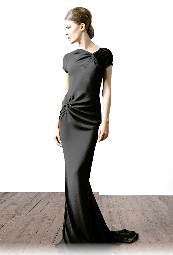 И все же, я была права, а у оригинала-то не расклешенная юбка, а рыбка. :) И там драпировка ловко натянута на бедра и не опадает, как при просто падающей юбке.