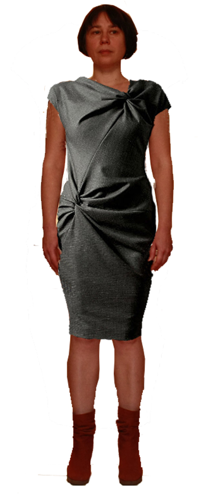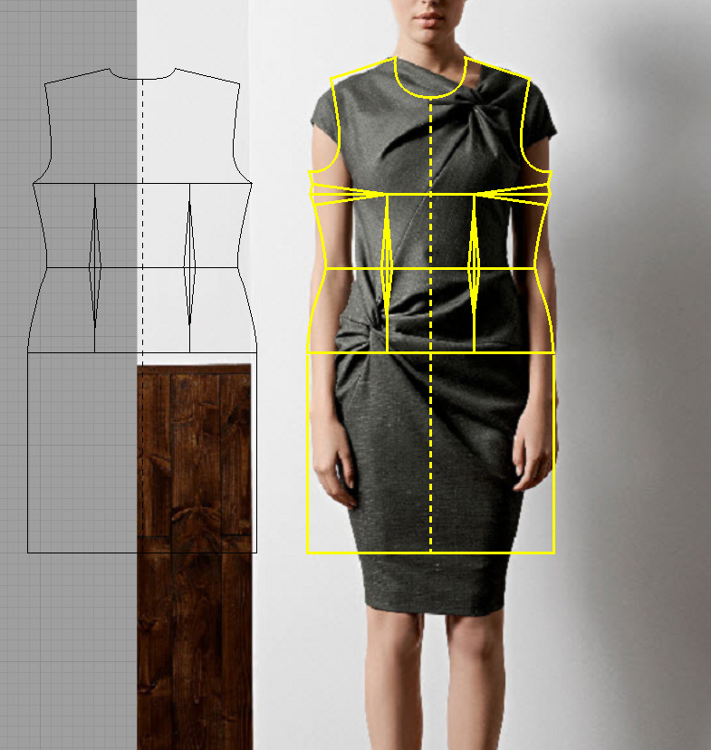 Что я бы сделала для начала. Поместила модель в фотошоп, отмасштабировала бы до своей фотографии, порастягивала бы ( потому что я однозначно шире модели), поуменьшала - потому как я её ниже на сантиметров 17... и примерила бы на себя это платье.