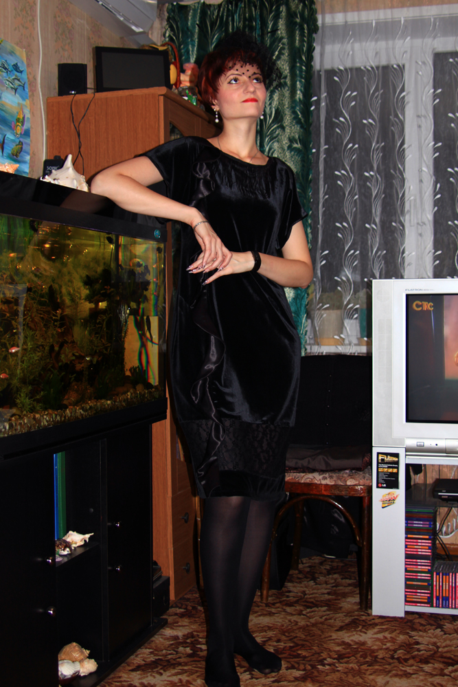 Сказо4ница Опубликовано 30 октября, 2012 Автор Поделиться #112 Опубликовано 30 октября, 2012 Пуговичное варенье, на самом деле всё очень просто: - основная ткань - велюр, очень приятный; внизу вставка-кружево; волан из атласа "астра"- силуэт практически прямой, типа трапеции, от груди до бедер чуть расширяется (у меня большая разница между грудью и бедрами) и от бедер идет прямо; рукав-цельнокроенный- волан выкроен по спирали, описание по этой ссылке- ну и к горловине пришила висюльки готовые, думала еще снизу пришить,решила что будет перебор Шляпка покупная Забыла сфотографироваться со спины, там V-образный вырез горловины, сегодня исправлюсь:) Ссылка на сообщение Поделиться на другие сайты Поделиться