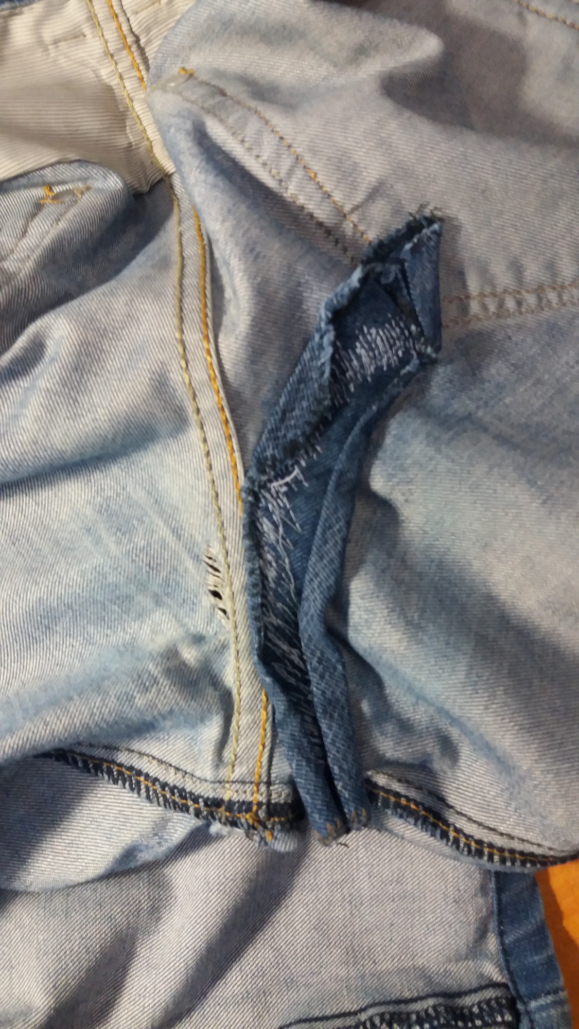 По порядку фото: вот такие трещины были рядом со шлевками,карманами и заклёпками, вид с изнанки и лица после ремонта. И общая картина изнанки.