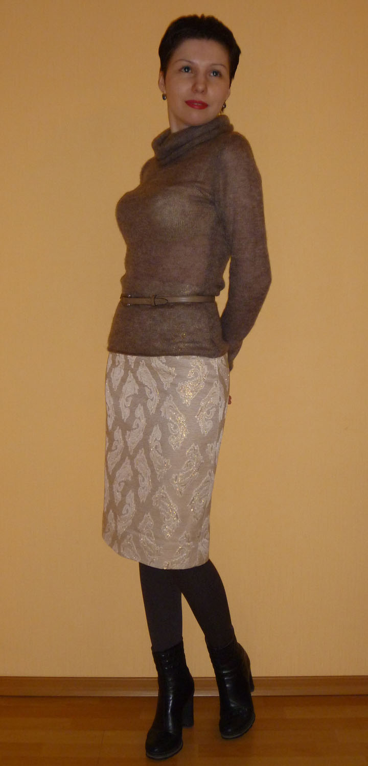 SkY Опубликовано 21 января, 2013 Поделиться #1330 Опубликовано 21 января, 2013 Приветсвую всех заглянувших.по прошествии 2-х месяцев появилось немного новых вещей. Посему показываю и жду честных откликов Почти к каждому платью уже куплена ткань на курточки/пиджачки, но ждать пока я их сошью думаю не стоит. Показываю как есть. 1) платье из шерстяного крепа цвета пудры или вялой розы, не знаю как описать. Подкладка - шелк. Еще не определилась как носить с ремешком или без. Это платье изначально предполагалось в ношении помимо классического варианта еще и с плотными колготками + водолазка. Но т.к. уже оделось в таком виде, то уже неинтересно. платье одно, хоть что в нем меняй, оно от этого другим не станет 2) "Золотая" юбка. Были мысли шить пышную, но остановилась на карандаше. Ткань удалось найти шерстяную с золотой нитью(обычно все "золотые" - это полиэстр). Ничего особенного, но очень хотелось блеска. Колготки на самом беле меланжевые в коричневых тонах, фото искажает.В реале белье НЕ видно, вспышка проявила. Ссылка на сообщение Поделиться на другие сайты Поделиться