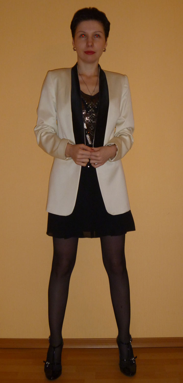 SkY Опубликовано 21 января, 2013 Поделиться #1333 Опубликовано 21 января, 2013 6) И пиджак. Ткань шерсть от Лейтмотив молочного цвета + атласная отделка. ВСЕ вертикальные швы отделала ручными швами (но их не видно), на подкладке тоже ручные швы. Понятно, что с брюками/джинсами можно носить. Но для фоток одела покупное платье - такой вариант мне тоже нравится. Из всех новинок - эта самая любимая. Вообще, черно-белая тематика - это МОЕ на все 100% Ссылка на сообщение Поделиться на другие сайты Поделиться