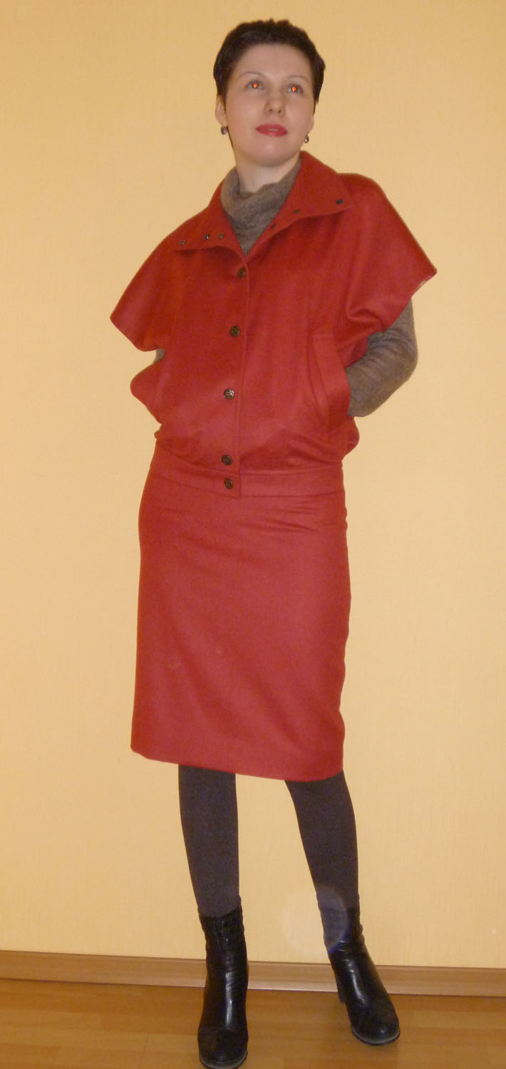 SkY Опубликовано 21 января, 2013 Поделиться #1331 Опубликовано 21 января, 2013 3) костюм из шерсти с мохером ягодного цвета, на фото почему-то красный.Юбка обычная карандаш + жилет. подкладка - шелк. Жилет подходит ко многим вещам - брюкам, джинсам, однотонным платьям 4) Платье из вискозного трикотажа Ссылка на сообщение Поделиться на другие сайты Поделиться