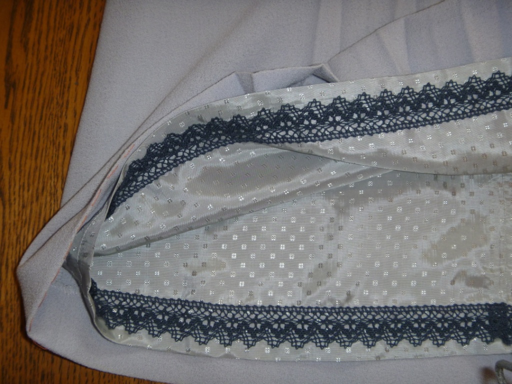 рассказать особо нечего, Ткань - моя любимая креповая шерсть + подклад + кружева. Юбку сделала со складками.