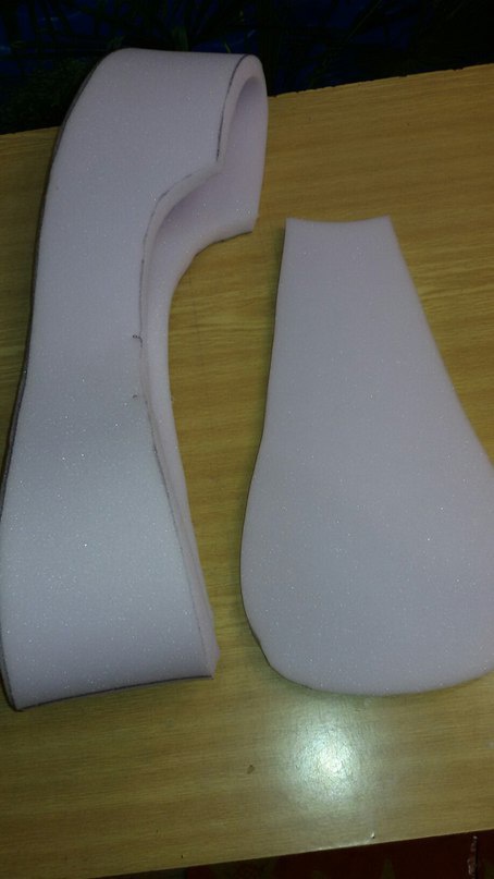 mosha Опубликовано 24 февраля, 2016 Поделиться #4766 Опубликовано 24 февраля, 2016 Показываю эти ботиночки, потому что они тоже сделаны на основе домашнего тапочка. Выбираю тапочки самого большого размера. С небольшим бортиком, плавным углублением для пятки. Выкройка из 2х см поролона, но носок и пятку добавляю для объема еще двумя слоями. ( Уже писала, что пятку делаю очень объемной, чтобы она выталкивала ступню вперед.) Выкройки язычка и задней части обшиваю по отдельности, (верх и подкладка), пробиваю крупные люверсы под шнуровку и потом сшиваю между собой.Поролон свернуть и склеить трубой по размеру периметра подошвы. Обшить материалом, по цвету отличающимся от верха. Сшить с верхом. Все выкройки надо делать свободные, с добавочными сантиметрами. Учитывать, что при обтяжке и пришивании они ужмутся.Искала, но не нашла выкройки, по которым делала ботинки. Для ориентира можно взять эти кеды из фоамирана. Важно! Делаю петельку из плотной репсовой ленты, обшиваю тканью верха и очень крепко пришиваю к тапочку сзади, посередине. пропускаю эту петлю сквозь толщину поролона в пяточной части. За эту петельку надо тянуть, надевая ботинок.Потом при помощи крепкой иглы и наперстка пришиваю объемными нитками насквозь к тапочку, делая крупные 0,5-0,8 см стежки. Как видите, подошва тапочка не приклеена к ткани, рант идет вокруг внатяг. Как правило, пачкается и рвется ткань именно в этом месте. И не поможет этого избежать замена на искусственную кожу, например. Только множество складочек появится. Лучше снова взять плотный трикотаж или стрейч, вырезать полоску и обшить поверх испачканного. Получится чистый новый ботиночек. Ссылка на сообщение Поделиться на другие сайты Поделиться