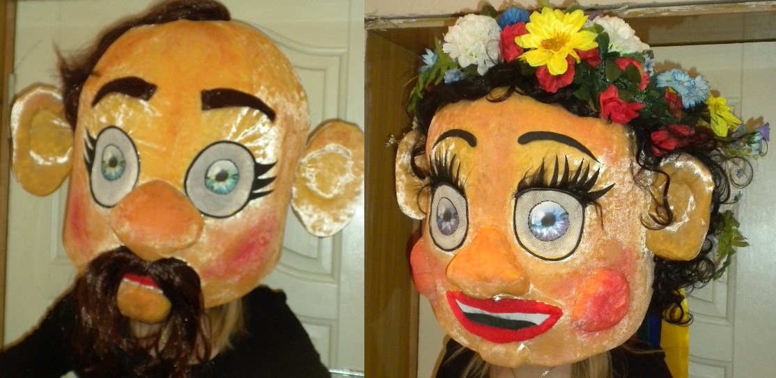 viktoryzka Опубликовано 14 января, 2012 Поделиться #2294 Опубликовано 14 января, 2012 Вот все же решилась выставить своих украинцев,делала их с 1 по 6 января,6 вечером они уже выступали.Страшненькие они конечно,но времени уж совсем мало и опыта в изготовлении человеческих лиц практически нет.Выставляю,потому что таких как я много,не у всех выходят прекрасные куклы,но пробовать все же надо!Я здесь делала накладные нос,щеки и подбородки.Вырезала примерную форму,большего размера,делала с помощью вытачек объем,обтягивала тканью и потом пришивала на нужное место.Ноздри делала так:на нужном месте внутрь наносила клей и вдавливала ноздрю,прижимая поролон вместе с тканью между большим и указательным пальцами.На первом фото они такие,как получились сразу,а сегодня я головы переделала.Женщине сделала"пластическую операцию"-уменьшила нос,увеличила рот.Мужчине добавила и поправила усы,лучше закрепила волосы на голове(проклеивала слои волос термоклеем и осторожно,чтоб клей не выполз наружу,придавливала не руками,а самими волосами).Для волос использовала парики.Мужчине-1,женщине -2,разрезала их и приклеивала.глаза-спасибо adita!она когда-то выставляла эти радужки,приклеила их на 3 слоя фатина.Для лица использовала велюр телесного цвета,но он дает блики и бледно смотрится,поэтому попросила нашу художницу их приукрасить и разрисовать.брови у мужика из парика,у женщины из кусочка кожи из кожи и ресницы у них обоих,у женщины для пушистости добавила еще немного локонов от парика. Мы свое призванье не забудемСчастье и радость мы приносим людям! Ссылка на сообщение Поделиться на другие сайты Поделиться