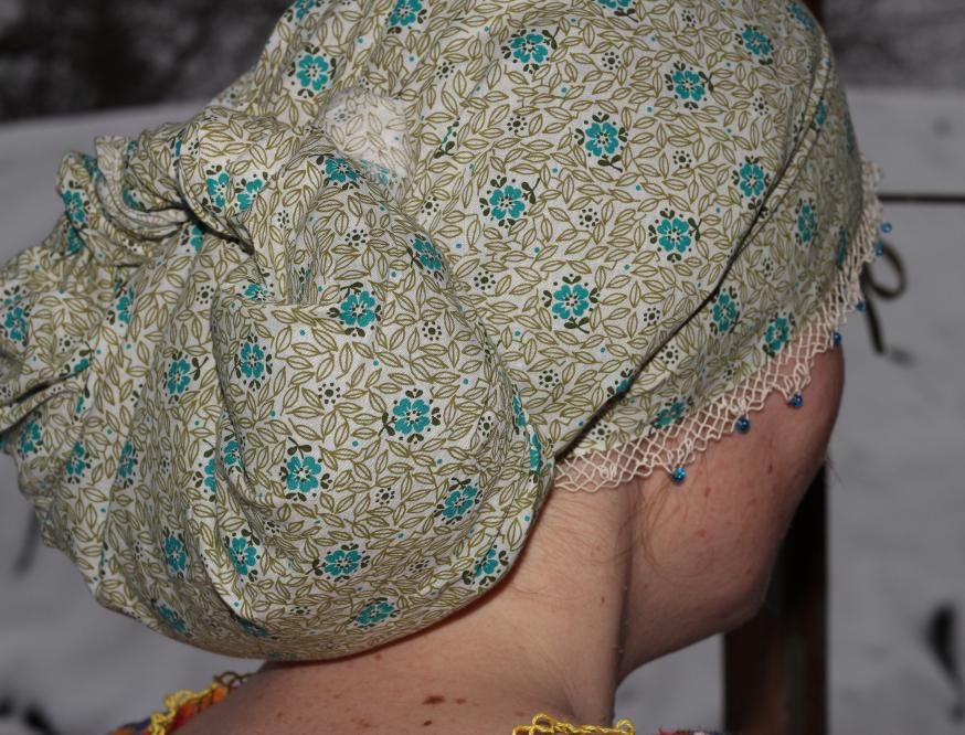 Ещё немного кружева :) Сделала себе новый хлебный платок - для выпечки хлеба. Края никак не подрубала - с двух сторон кромка, с двух других - узенькая бахрома. Такой способ завязывания показывала в своей теме Арлетт, очень удобно :) Бусинки немного утяжеляют край.