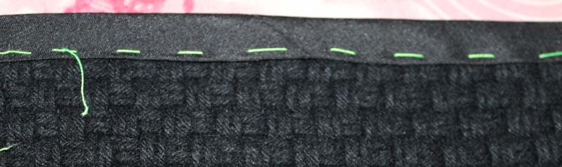 Прострочила косую бейку на лицевую сторону детали юбки, край для большей прочности прошла зигзагом