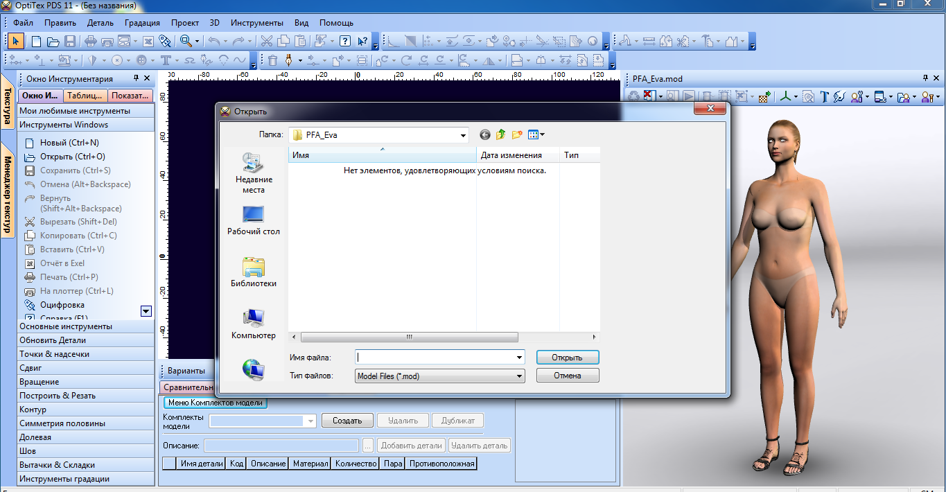 Устала воевать с Оптитексом. Установила на ноутбук. Все загрузилось. Но не вижу ни одного манекена. Окна неактивны. Вот такой вид: