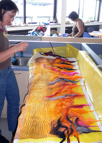 BriNa Опубликовано 27 января, 2009 Поделиться #88 Опубликовано 27 января, 2009 Последнее на сегодня, фото освоения техники сибори группой учеников. Сибори - это окрашивание такое, окрашивался шёлк на пластиковой трубке, потом валяние, в результате они получали такую юбочку :) Но мы можем и в шарфиках идею использовать. Попадался мне и войлок,окрашенный по этой технологии, очень чёткие графичекие контуры. Посмотреть можно здесь _ Sine ira et studia _ Ссылка на сообщение Поделиться на другие сайты Поделиться