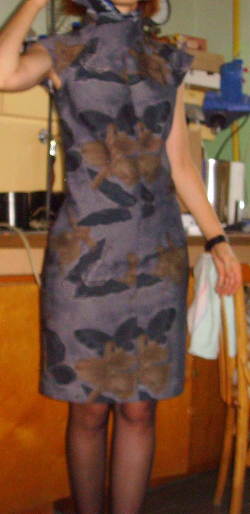 отличия - без подкладки, на спине нет молнии (переставила в шов соединения рукава с полочкой, но перепутала стороны - получилось с правой стороны, молния потайная). сверху размер 36, ниже пояса 38. И все равно по бедрам облегает. Что не нравится, так это ворот - широк. У меня шея тонкая, а когда еще не пришила обтачку, казалось что нормально, а потом было жалко все распарывать.