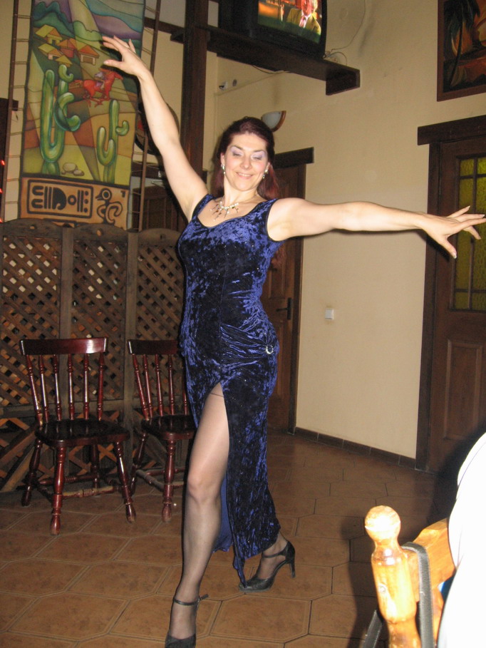 Фото тоже старое...года так 2004.Не помню точно.На этом фото платью уже примерно года 4 , Но и по сей день оно очень хорошо сохранилось и по прежнему актуально и удобно. Материал стрейч-бархат, сине-фиолетового цвета с нанесенными поверх ткани серебряными блестками в виде черточек по диагонале. Недавно подруге отдала поганять! Поразительная ткань. Столько я ее носила а ей хоть бы что!