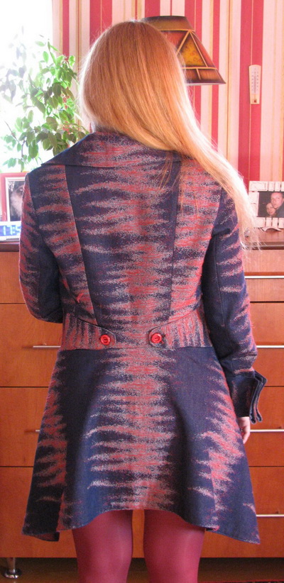 Не очень удачно получилось - спинка тянет назад, хотя при коррекции я убрала 6 см - больше уж некуда. Или модель не моя, или это потому, что мне еще и ширина спины не подходит