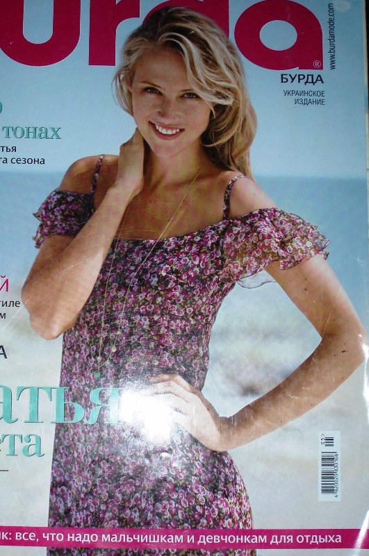 ой) выкройку не сохранила...помню, что лиф тоже из бурды брала...номер конечно не помню...там сарфан с такими складочками был, только вырез до самой линии пришива,глубокий. Пояс просто складки по косой...