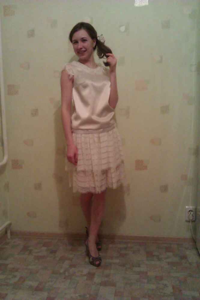 Юбочка и атласный топ- прелесть, что такое! Если очень строго придираться, то можно поработать над обтачкой проймы спинки и капелькой утюгом , но очень-очень осторожно! Атлас- ткань непредсказуемая, вполне может быть, это искажения от вспышки.