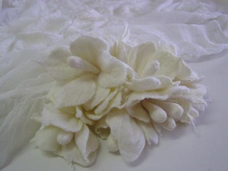 Ангельская вещь получилась, невесомая, букетики съёмные с хитрыми петельками. Шерсть, шёлк, шифон, талант... и другие ингредиенты.