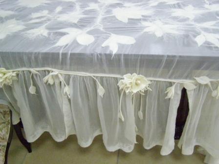 Очень, очень нравятся белые цветы, всё такое чистое и нежное. Какое же должно быть платье у невесты, чтобы подстать этой скатерти?