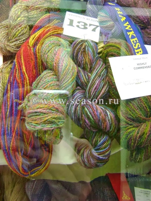 Lucky Dog Опубликовано 21 декабря, 2013 Поделиться #301 Опубликовано 21 декабря, 2013 Здравствуйте, Алла и дамы, которые заходят в этот топик.Выполняю обещание показать и написать. По элементарной прикидке боле- мене связный рассказ получится довольно длинным, потому что главное в нем - иллюстрации, а их много в один пост не поместишь. Так что заранее извините те, кому сегодня некогда и ждут дела. Я вчера закончила план на 2013-й и , как говорилось раньше, подвожу итоги.Все отлично сходится, несмотря на то, что я три месяца назад переехала, перевезла свои мастерские, и это, ясное дело, скушало кучу времени,нервов и денег. Но , интегрально, по году, все отлично сложилось, и "хвостов", которые я ненавижу- НЕТ! Этот как бы отчет в вашей теме- последняя обещалка, а я её сейчас прихлопну, для полного Щастья. Тема у нас про то, что ткать можно по-разному, поэтому рассказ о том, как тку я.Главное, что надо сказать прямо сначала - что ткать - это только один из моих крафтов, не первый по списку, но и не последний. На его долю, в общем отсчете времени, приходится процентов 15-20%.Я делаю разный Арт текстиль, и тема "надо бы лум заправить" возникает тогда, когда мне в каком-то проекте нужна какая-нибудь прикольная домоткань, в том или ином количестве. Работаю процентов на 90 с натуральными матералами, которых в стране моего проживания - абсолютное изобилие. Начинаю работу очень часто - именно с начала.С хорошего материала.Начинается , территориально, все почти всегда вот здесь, на самой большой выставке страны, ежегодной. Потом с тем, что мне привезди и отдали, делаю несколько( много!) манипуляций( сортирую, мОю, чешу, пряду,крашу)- и вот оно! Можно потрогать руками, это уже не "душистое" и грязноватое волокно, это интересная, часто уникальная, нить. Которая , сама по себе, в некотором роде арт-продукт, и весьма популярна.Не первой фотке ( ниже) пряжи -бленды шерсть \шелк, на второй - выставочный набор шерсти. На обеих фотах все ручного крашения.Естественно, что и пряжу,и её цвет делаю уже под конкретную потребность, под проект. Надобность в ручной пряже имеется не всегда, и теперешний магазинный выбор пряж, особенно австралийских, итальянских и турецких рассматриваю как Клондайк и чудесный источник.Обожаю! Имею огромную коллекцию, которую регулярно пополняю. Вот тут приходит время лумов. Никогда никаких половиков для обучения я не ткала. Причин много, главная в том, что я, к началу занятий ткачеством , уже была вполне себе опытным крафтером и , не без оснований , для себя( это ИМХО), считала, что на половиках ткать не научишься. Вот как выглядела моя самая первая работка с новеньким маленьким RHL лумом: кусочек 90 Х 35 , из которого я состряпала жилеточку. 7 лет назад дело было. Жилеточка уже старая по годам, фоты свежие, попросила заново отснять для этого поста. Ни грамма нигде эта фенечка не состарилась, несмотря на активную носку, она ( жилетка) живет и носится в хвост и в гриву в холодной стране. Пронырливые половики еще долго не были у меня в ходу, как-то дом совершенно не был под них заточен, ни по интерьеру, ни по надобности. Потом вошли в силу наши собаки, их две, и как временная мера по сохранению коё-чего внутри дома, я понаделала некое количество половиков, уже имея довольно большой список более интересных тканых вещей. Перед переездом все старые половики выбросила, показалось, что не нужны. Но как т