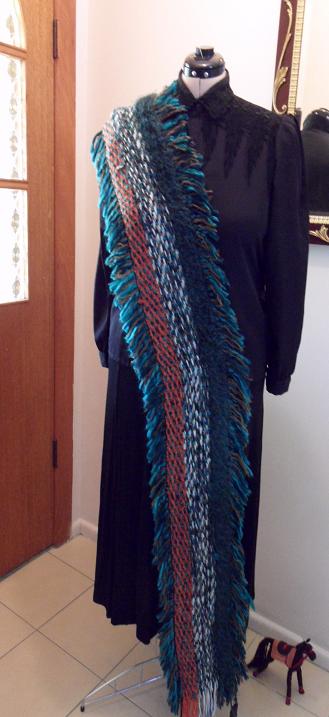 Lucky Dog Опубликовано 21 декабря, 2013 Поделиться #313 Опубликовано 21 декабря, 2013 В тему припусков-расчетов. И невозможности прогнозов. Смотрим сначала:- шапочка и шарфик; Не сами по себе, а к жакетику.плюс сумончик, до кучи. В ткани полно прибамбасиков: окошки, in-woven beads и много чего еще.Пряжа легкая, шерсть и шерстяные бленды, сложная, потому что неровная, и есть немного самопряжи. А теперь представьте, пожалуйста, что ВСЕ детали этого комплекта( исключая ручки сумочки) вытканы одним полотном, на одной основе и нигде ваще не резались. Ну как-то вот так, как на кратинке ниже, разделители - пропуски основы. Хорошие долевые края, резы- только поперек основы. Правильные такие. Ничего нигде не подрезалось, все детали в сборке сели идеально. Такой был расчет, качественный. Ща ваще страшное скажу - в этом комплекте нет ни одного конструктивного шва, сшитого нитками и иголками.Ну не любит домоткань шитья! Дальше было вот так: Сейчас на этом комплекте учат студентов - ткачей. И последнее, больше просто не могу, мочей нет: Нуно фелт мой," Водоросли". Знаковый предмэт, фирменый. Он такой волшебный по одной очень простой причине: это фелт по сотканнному вручную тонюсенькому шелковому полотну.Plain weaving. Манипуляции с шерстью родили этот чудесный союз.Хозяйка сего чуда говорит, что когда оно с ней- с ней случаются какие-то совершенно приятственные, неординарные вещи. Интересно.... Алла, трансформеры, да еще такие простые, почти примитивные, надо разгадывать самостоятельно. Тогда они станут вашими. Это случай реально прост. ФСССЁЁЁЁ! И все вышенарисованное - к тому, что ТКАТЬ МОЖНО( и НУЖНО) ПО-РАЗНОМУ! Всем - замечательного Рождества, и не одного, и просто восхитительного Нового Года!Пусть все сбудется и получится, пусть будут здоровы близкие и вы сами, пусть новые ткани будут воплощениями мечты.Удачи! Все реки текут в море, но море не переполняется... Ссылка на сообщение Поделиться на другие сайты Поделиться