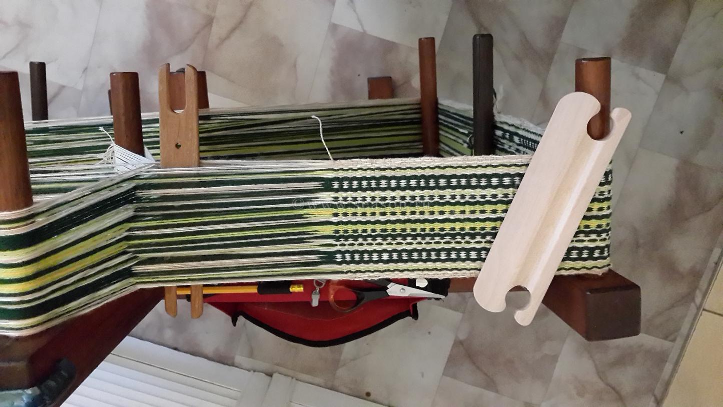 Lucky Dog Опубликовано 29 июня, 2016 Поделиться #645 Опубликовано 29 июня, 2016 Всем привет!Давненько не встречались!!Что понятно : лето, отпускА, отдых , даже если на работе, длинные светлые дни.Мы зимуем, погода лютует, отверзлись хляби небесные, холодина, дни - с гулькин нос длинной... Сидим по домам, по погоде все время штормовые предупреждения, особо не покатаешься.Ну,рукодельничаем, конечно. Я собралась в сентябре в Москву-Питер-Голландию-Германию, на обратном пути - Камбоджа, готовлюсь. Набрала хороших заказов, в том числе на пряжу, километрами. Для всего этого сейчас самый сезон.Ну и подарки нужны, некоторые подарки давно обещаны... Короче, не сильно добровольный, но честный трудовой энтузазизм в полном цвету.Доделывая интерьерный заказ( освежение обтяжки необычной мебели ткаными вручную материалами) запарилась искать широкую , прочную и рустикальную тесьму, везде одна синтетическая вышивка на синтетике, на тему " незнамо што", химического цвета, у нас в предложении, и ширина не больше 5-6 см. Максимум. Совсем НЕ ТО. И вдруг встречаю , почти на улице, вот ЭТО. А я ЭТО хотела давно, но не доходил ход много раз. А когда ход доходил,то ЭТО нагло стоило почти как вертолет, этот вот десяток смешных палок. А тут мне это просто отдали, не понравился, неудобное... Ну, не танцуется с ЭТИМ танцорам,что-то мешает...Я над ЭТИМ подумала, всё, что надо, по-уму и опыту, доделала, добавила, покрасила и приспособила. И вышел у меня офигительный напольный inkle loom. Который делает авторскую тесьму до 18 см шириной. ТКАТЬ-ТО МОЖНО ПО-РАЗНОМУ!!!Конечно, опробован этот лум немедленно. Скандинавские супер-пупер машины - аддыхают!Особенно с учетом их бессовестных стоимостей. А такой , как мой,чтобы сделать нужно только желание его иметь, полдня, электродрель и сто рублей.Зато каков результат!Заряжала основу в один виток , а не по всем пЕгам с изгибами, без фанатизма по длинне, на " просто попробовать".И вышла самая первая в моей жизни самолепная( от Шпульки словечко) тесьма. Рисунок, или, если пафоснее, дизайн придумала сама, на основе "скоростных" познаний , почерпнутых в хорошей книжке. Конечно, уже имеющийся опыт познания и практики ткачества серьезно облегчил все задачи. Но и начинающему тут дел - не вспотеет.В общем, дело разложилось так( предполагая, что лум был уже готов к работе):- день читала классную книжку, по диагонали( 300 стр и множество картинок);- два дня , впервые и на новенького, чертила и раскрашивала мелкие клеточки, пока сочинила то, что хотела. Без этого не рассчитать необходимое количество ниток для ходовых испытаний;- три часа ( всего-то! в первый раз!)натягивала основу;- день ( с перерывами на другую работу) и полночи ткала тесьму.С одного простого оборота, по периметру, основы получилось 2м 30 см( без учета нерабочих хвостов, которые станут шикарной бахромой ) качественной суровой тесьмы, которая мне нужна. Осталось доткать еще одну ленту такой же широкой тесьмы, и 7 метров тесьмы-компаньона, более узкой, вполовину. И всё это дело -обалденное удовольствие, видимо, на новенького, и из-за быстрого качественного результата.Честно сказать, простотой и производительностью столь незамысловатого инструмента я просто поражена! И записала его в в текущие фавориты, мне столько всякой тесьмы теперь стало остро нужно- не сосчитать! Фото: Подготовленый и осноровленый лум с начатой работой Вид 