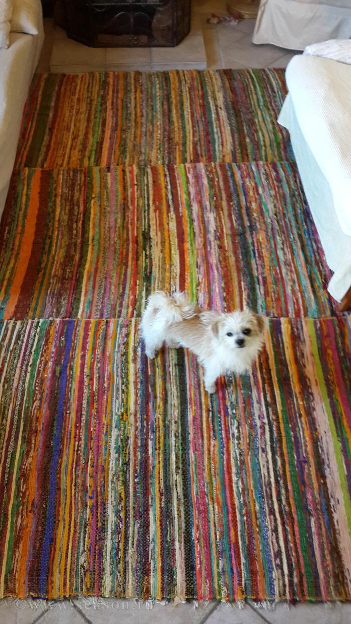 Lucky Dog Опубликовано 16 мая, 2016 Поделиться #637 Опубликовано 16 мая, 2016 Привет, дамы! А мы зимуем...Не как на родине, но нам тут тоже холодно, все привыкли к теплому климату.Во весь рост встал давно уже вопрос холодного пола, который я порешала в прошлую зиму толстыми шерстяными коврами. И теперь мой ЗИМНИЙ дом как юрта богатого кочевника, снизу вся мягкая и теплая, чего я очень люблю. На ЛЕТО больше половины этого текстиля я снимаю и без него жарко.Проблема возникла с моими молоденькими собакиными, там, куда они вхожи ,тоже пол" утеплен", и чистка ковра там стала ночным качмаром- минимум раз в неделю, собакины вполне бойкие, в дом и на улицу ходят пиццот раз в день..Чтоб их жизнь не ограничивать , порешила быстренько понаделать половиков , чтоб постелить поверх светлого ковра . И мягче, и теплее, и снять половики и вытряхнуть или постирать - не сравнить с чисткой большого ковра. Лум на 120 подруга дала на 23 дня, сказала, ни минутой больше, нужен будет.А ты( я) , если без пенделя , будешь колупаться три месяца, а 23 дня тебе хватит за глаза, если не маяться дурью.Тем более, что тряпки ты нарезала и куда-то бросила еще прошлой зимой ( было такое дело, резаные тряпки тогда надоели до темноты в глазах, и я их , мешки с клубками, забросила в сарай).Так и вышло, уложилась в 22 дня.Четыре половика , размеры немного разные у всех четырех, от ширина 111-115 и длинны 162-168. Всё мне подходит.Постираны в машине после длительного хранения лапши из ткани и процесса тканья, всё нормально. Специально оставляла и даже делала лишние узелки по утку, теперь они еще и массажные, если бегать по ним босиком..Три хорошо легли в зимней гостиной с печкой , а один постелила на дороге из кухни в прачечную, мимо обеденного стола. Там регулярно затаптывался и закАпывался и пачкался всяким кормом и едой джутовый красивый коврик. Так что теперь зимний вариант самой оживленной и рабочей части нашего country Cottage теперь удобен и комфортен всему народонаселению дома. Афганка моя пока что по половикам ходит очень смешно, с опаской, она девушка впечатлительная, и к переменам долго привыкает. А мелкой собачульке сразу очень всё понравилось... Маня,праздник наш был классный и большой. Это праздник с традициями, с большой программой, соревновались дровосеки( все красавцы сказочные!), пожарные, был большой концерт, показывали разных чемпионов-животных фермерских, конкурс яблочных пирогов, много детских развлечений и всякой вкусной еды.Ткацкий конкурс проводили впервые, идея была моя, а работало на эту идею много народу. Нам специально поставили громадную( 25Х30 метров ) маркизу. У нас там и выставка работ была небольшая, и валяльный класс для детей( бесплатный, валяли яблочки), и продажа рукоделья и материалов, и консультации по проектам. И вы абсолютно правы, Маня, живое общение с людьми со схожими увлечениями ничем заменить невозможно.После прочтенияия вашего поста все время читаю мантру: " Я не знаю, что такое коклюшки.Я люблю ПОКУПНОЕ коклюшечное кружево. Я НЕ делаю и НЕ буду делать коклюшечного кружева". Места на это нет ни в голове, ни в руках, ни в доме. И время уже ушло. А так хочется, прямо зверски, уже давно... Наша чудесная, дивная бабуленька - умела. Удачи вам, Маня, в этом сказочном крафте. Все реки текут в море, но море не переполняется... Ссылка на сообщение Поделиться на другие сайты Поделиться