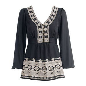 В тканевом магазине увидела черный шифон с бархатными цветам - на мой взгляд, очень яркая для меня и много черного, что мне не идет. Но таки купила отрез, сознавая, что очередная головная боль (или творческие муки) обеспечены ;0)