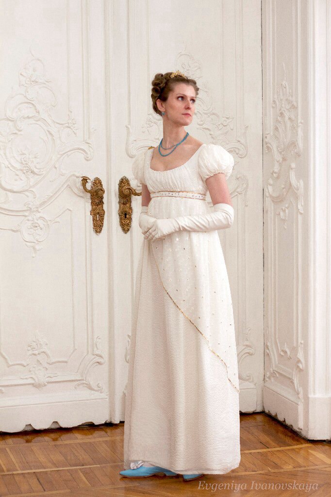 Diction Опубликовано 17 мая, 2016 Поделиться #480 Опубликовано 17 мая, 2016 (изменено) Были нижние рубашки, которые надевались под корсет. Нижнее платье. думаю, тоже выполняло функцию поддерживающего белья. Мария, определитесь с выбором ткани и фасона, а прежде чем определиться, рекомендую Вам приложить ткань на себе, потому что линии декольте и декор -- все это не просто так, а создает определенный гармоничный силуэт: поднять декольте и уже будет другой вид не такой изящный. Без корсета или мини-корсета тоже смотрится совсем по-другому, если размер груди больше 1го, то не всякий фасон будет смотреться. Вас привлекают фасоны со сборками, мне они тоже нравятся. И они кажутся наиболее простыми в исполнении.Варианты такого платья называют round gown, а на портретах ниже платье-рубашка (chemise). Для такого платья нужно легкая драпирующаяся ткань и глубокий вырез декольте. Декольте можно закрыть кокеткой или шемизеткой. Если ткань не тонкая, то сборки будут давать много объема -- приложите ткань или сделайте пробник. Если ткань тонкая и легкая, она может просвечивать и тогда обязательно нужно что-то нижнее. P.S. Из платья, которое вам понравилось как нижнее вы можеть сделать и верхнее. Но надо понять, как шить узкий рукав, чтобы не выглядел совсем как современный. Рукава, если не фонарик, то сзади "вынуто". Изменено 17 мая, 2016 пользователем Diction Ретро-мода и винтаж - мой блог на яндекс-дзене Ссылка на сообщение Поделиться на другие сайты Поделиться